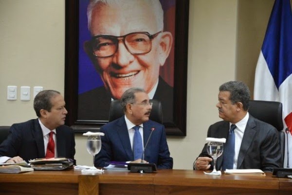 El presidente de la República, Danilo Medina, el del Partido de la Liberación Dominicana, Leonel Fernández; el secretario general del PLD, Reinaldo Pared Pérez; y la vicepresidenta de la República, Margarita Cedeño de Fernández, encabezan la reunión del Comité Político del PLD que desde las 7:15 de la noche de este lunes se desarrolla en el Salón Juan Bosch de la Oficina Presidencial de la organización en la zona universitaria, de la ciudad capital.