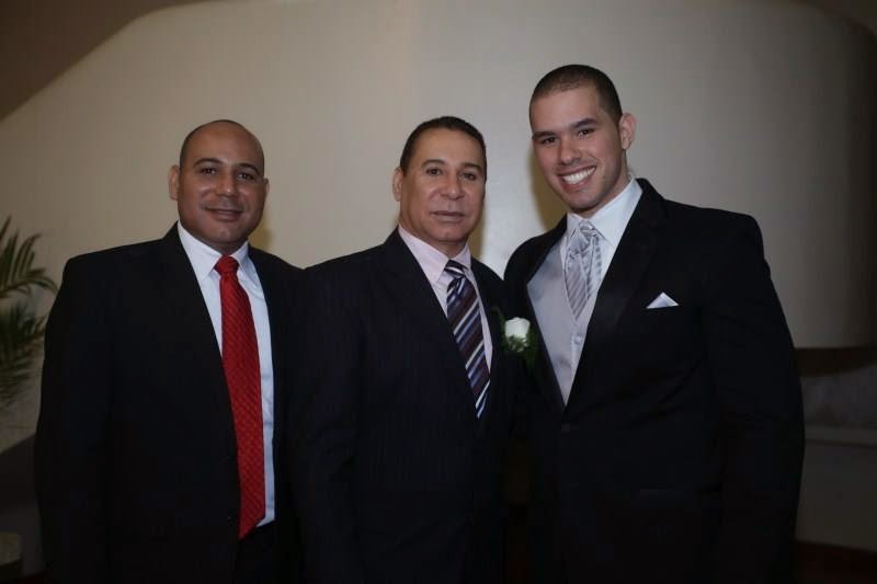 | Wilkins, izquierda, el día de la boda de su hermana. En el centro su padre Víctor Quezada y el novio de su hija. |
