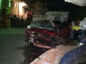 Según cuentan los moradores, el conductor del vehículo perdió el control del vehículo y chocó con el muro.