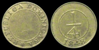 Para cuando circulan estas monedas aun no tienen ni escudo ni bandera, sino que fue en 1888 cuando empiezan a tener un escudo dominicano.
