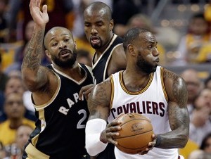 CLEVELAND. LeBron James facturó 39 puntos, dejó atrás a Kareem Abdul-Jabbar en la lista histórica de anotadores en los playoffs y condujo anoche a los Cavaliers de Cleveland a una aplastante victoria 125-103 sobre los Raptors de Toronto. Al igual que hace un año en la final de la conferencia, los Cavs aventajan 2-0 ante los Raptors, que tendrán que buscar soluciones o de lo contrario esta serie de acabará en un santiamén. Toronto sufrió una paliza por quinta vez seguida en Cleveland en los playoffs, con un margen promedio de 24.2 puntos.