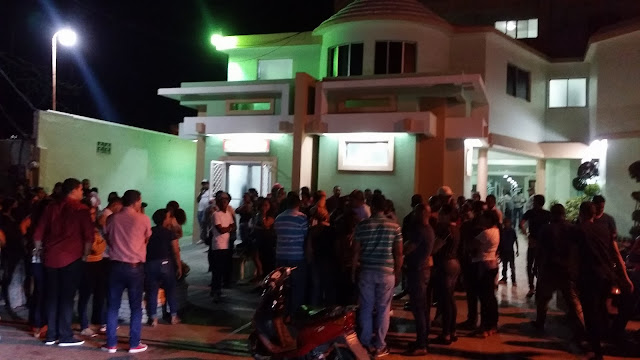 Decenas de personas, entre familiares, amigos y curiosos, acudieron al centro Igualas Medicas San Juan donde estaban los cadáveres de los jóvenes fallecidos y la joven herida.