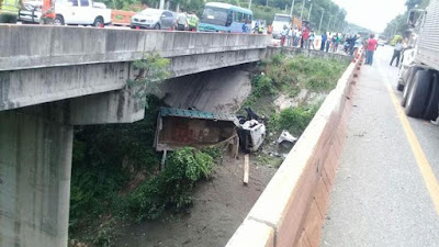 Camión cae de puente autopista 6 Noviembre
