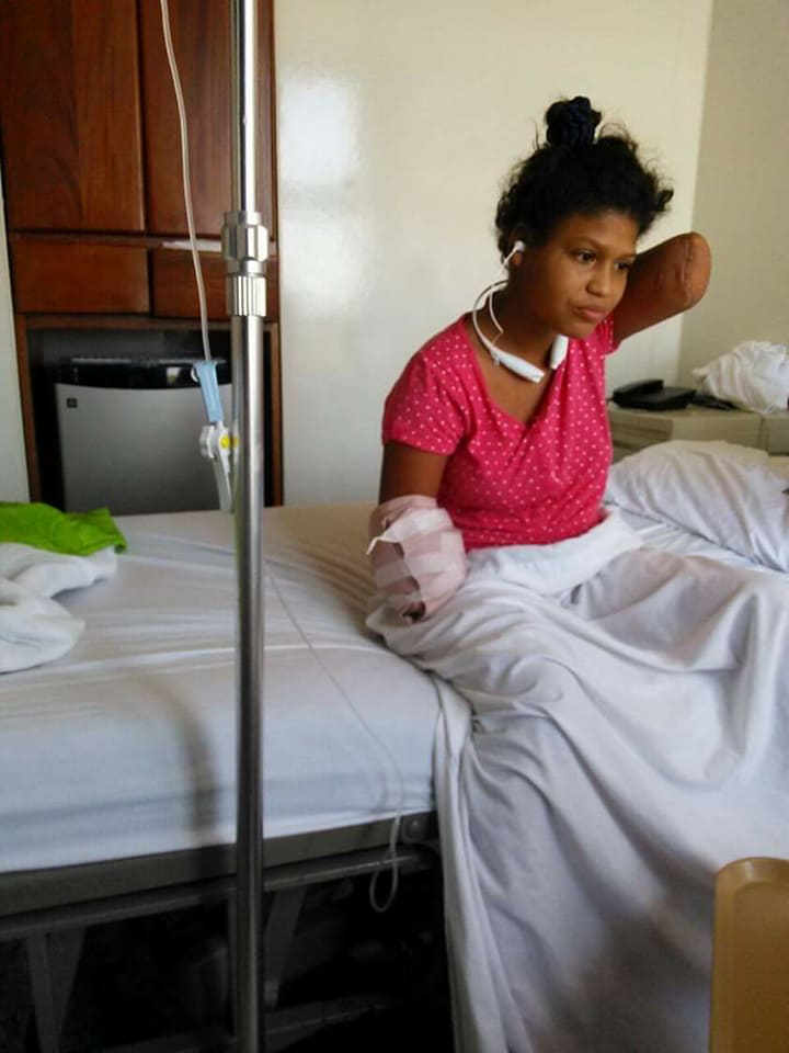 A cielo le amputaron sus dos brazos en el hospital Darío Contreras, y luego de estar al borde de la muerte, logró sobrevivir.