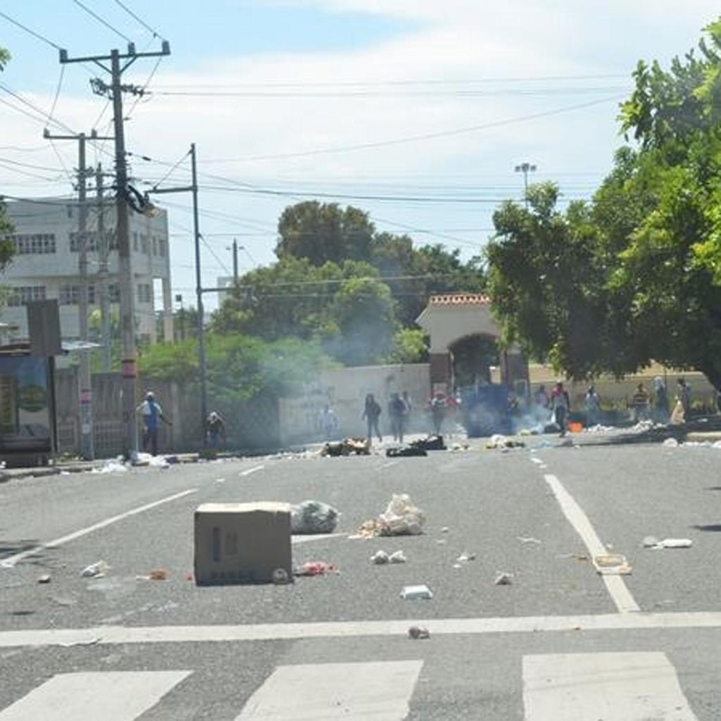 Los manifestantes lanzan piedras y quemaron gomas en el perímetro de la UASD.