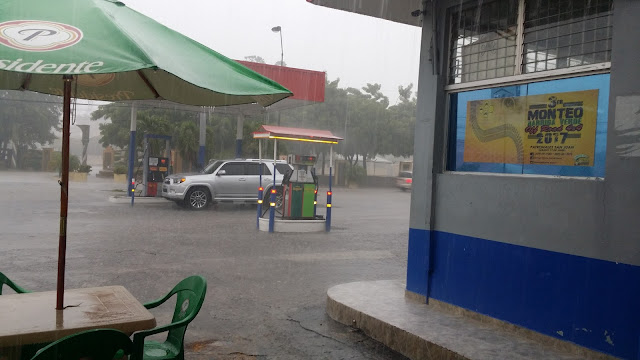 Una vista de la lluvia desde los llamados frezer, lugar de recreación donde m,mucha gente fue sorprendida por la lluvia |