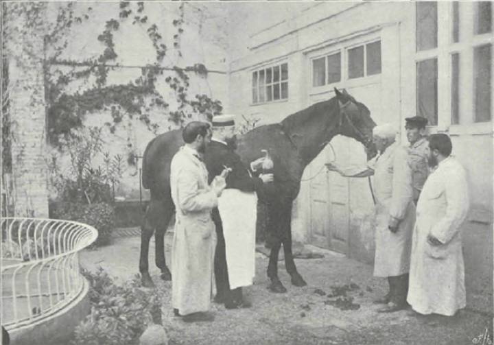 | Un médico de Barcelona extrae sangre a un caballo, en 1898. COMB |