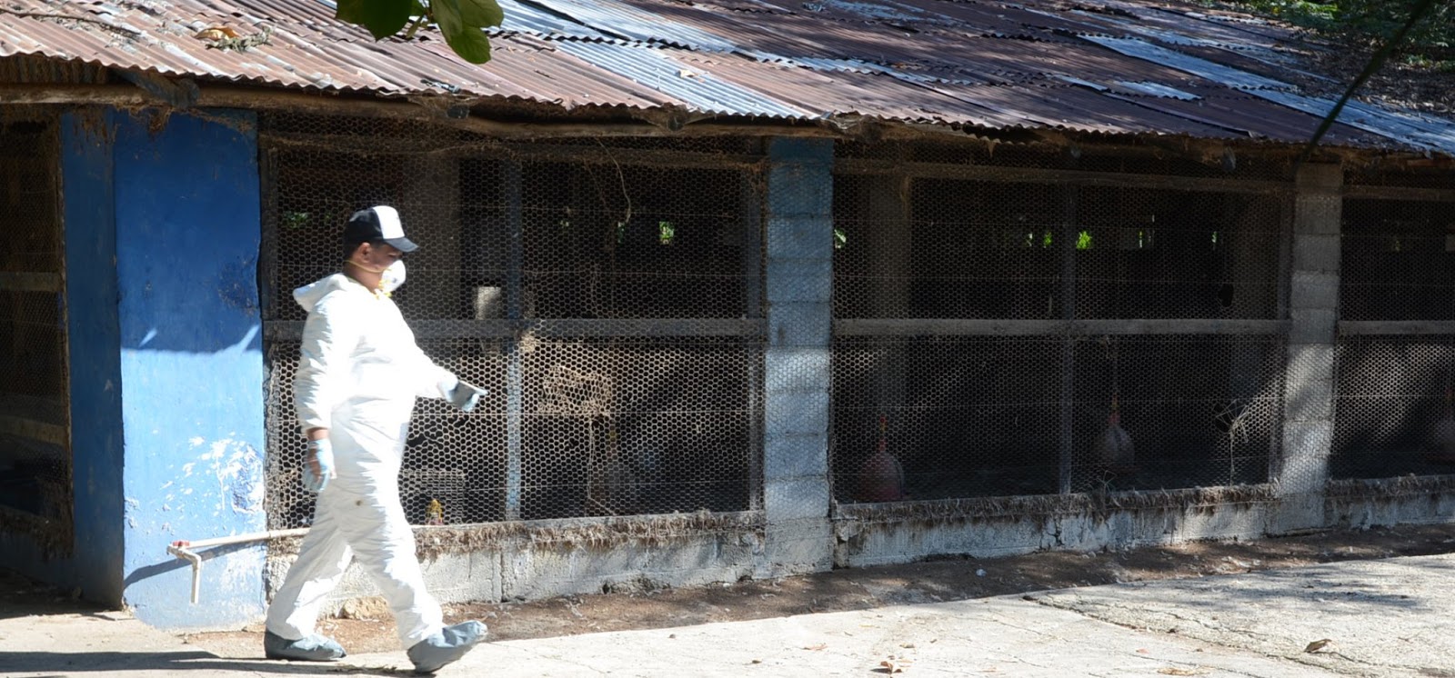 Utilizando vestimentas para estas situaciones el personal de Ganadería se mantiene en el lugar para evitar que sean sacados pollos o cualquier otro derivado de estos animales.
