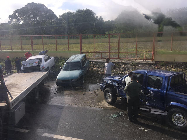 Aparatoso accidente entre dos patanas y otros quince vehículos en la autopista 6 de Noviembre