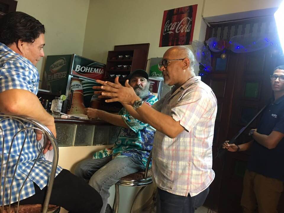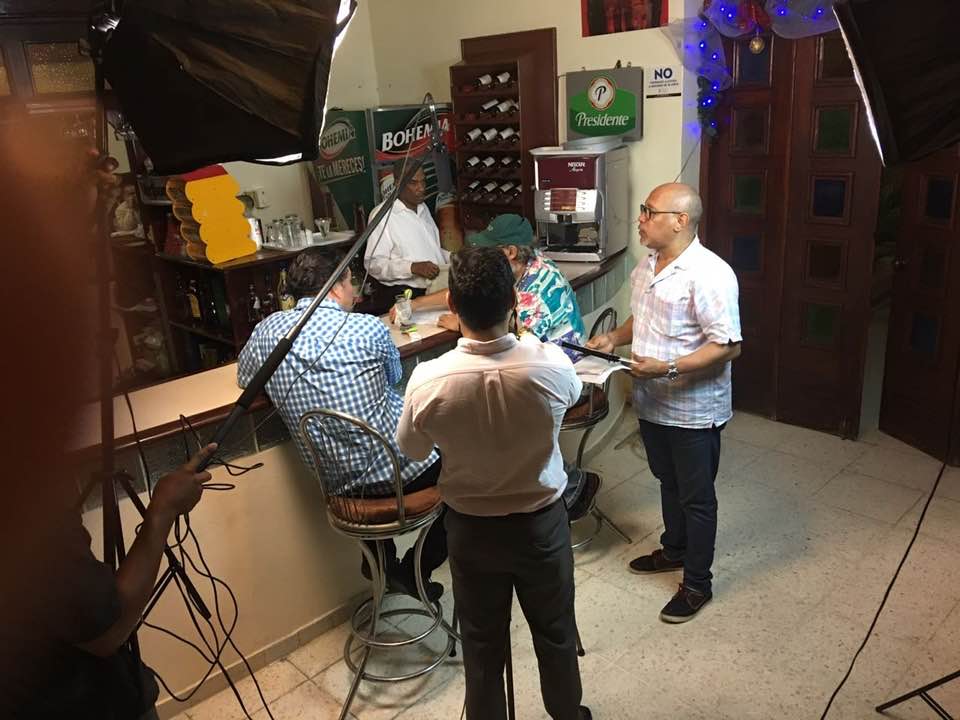 | Cassandro Fortuna, da instrucciones a los actores en el rodaje «El último Inquilino» en la barra del hotel Maguana. |