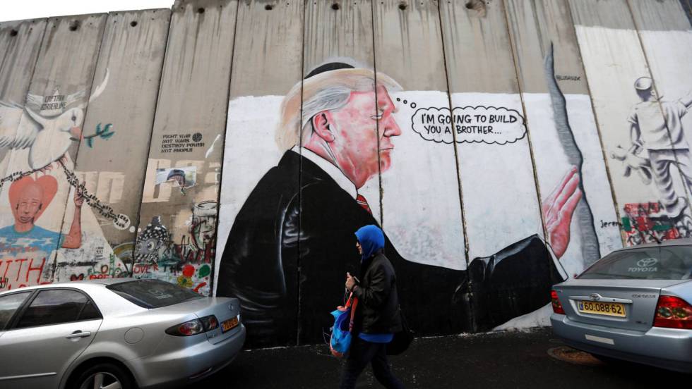 Una mujer camina junto a un graffiti del presidente de EE UU, Donald Trump, en el muro de separación israelí de Belén, este jueves. / Vídeo: Declaraciones del Papa Francisco con respecto a Jerusalén.  REUTERS-QUALITY