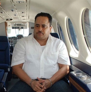 | Bienvenido Guevara Díaz (Maconi) cuando era llevado detenido a Puerto Rico por su vinculación en la red de narcotráfico del excapitán del Ejército Nacional, Quirino Ernesto Paulino Castillo. |