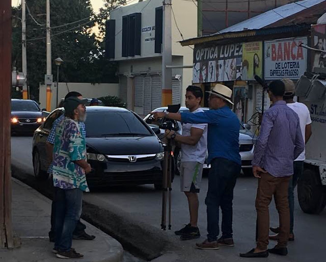 | Rodaje de una escena de «El Último Inquilino» en la calle Colón esquina avenida Independencia, San Juan de la Maguana |