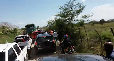 Las autoridades salieron del vertedero a un lugar hasta el momento desconocido y son dirigidos por el acusado, quien no se ha desmotado del vehículo negro que lo transporta.