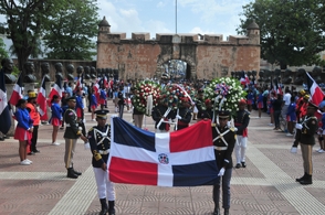 El acto celebrado por la CPEP inició con las notas del Himno Nacional a cargo de la banda de música de la Armada de la República Dominicana, seguido de los honores militares de estilo a cargo de un batallón conjunto de cadetes y guardias marinas de las Fuerzas Armadas y la Policía.