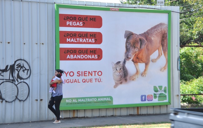 La primera se colocó en la avenida Bolívar casi con Alma Máter. Siguieron 10 en los próximos 10 días y así se fue llenando toda la ciudad, especialmente en los barrios, “porque la idea es que ese mensaje llegue a los barrios, que es donde más se maltrata al animal”.