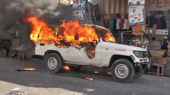 Tras el anuncio de los incrementos a los combustibles el pasado viernes, decenas de personas han estado incendiando vehículos, destrozando negocios y atacaron la entrada de un hotel en la zona residencial del Petion Ville.
