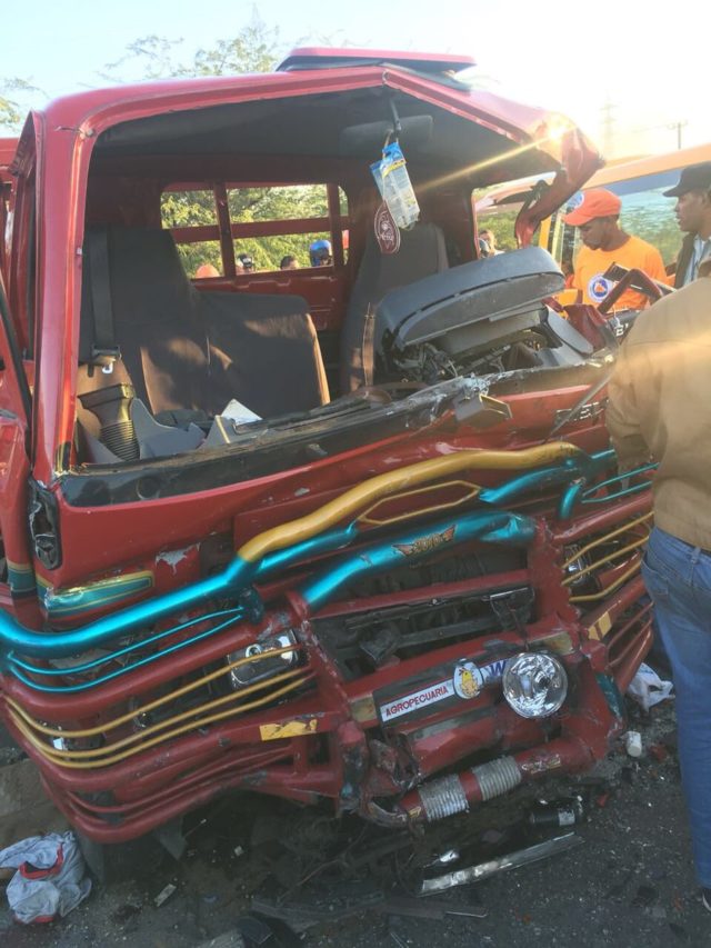 El otro accidente ocurrió en la carretera Sánchez, ocho kilómetros antes de Azua en dirección Santo Domingo Azua, e involucró a un camión Daihatsu color rojo. En el mismo una persona murió y siete resultaron heridas, de acuerdo al reporte de Urtecho.