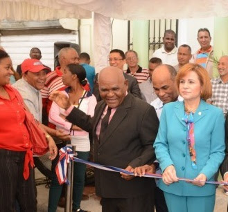 El señor Bienvenido Deogracia Valdez, izquierda, el día de la inauguración[n de a oficina de expedición y renovación de licencia de conducir ene esta ciudad. A su lado la diputado Yomaira Medina.