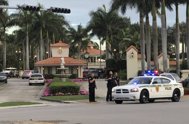 Policías en la entrada del hotel de Trump, tras el tiroteo. AP