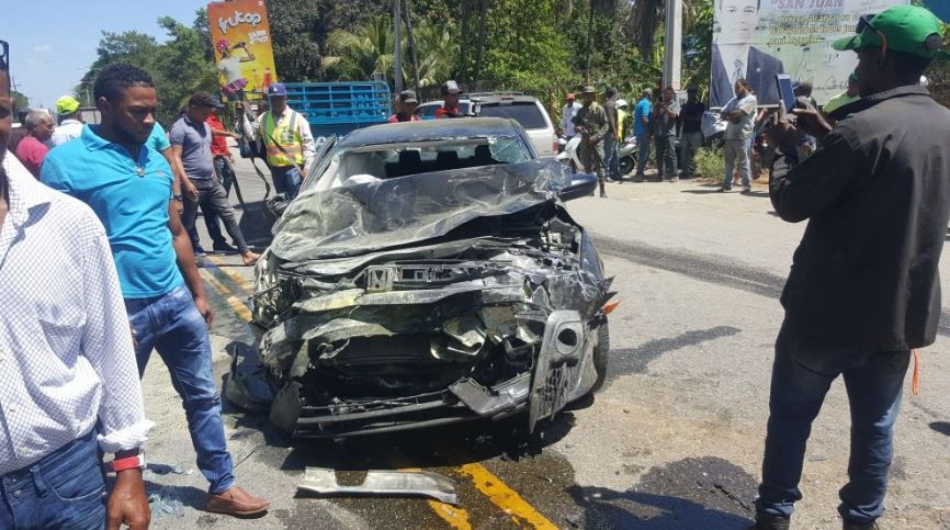 El accidente se produjo el mates en la mañana en el kilómetro dos de la carretera San Juan-Azua, entre el minibús placa Z505944, y el carro placa A75697.