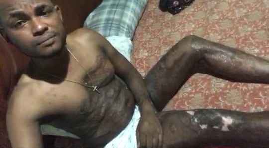 | Saido Sánchez a quien los liberados por el Tribunal Colegiado quemaron el 57 por ciento de su cuerpo |