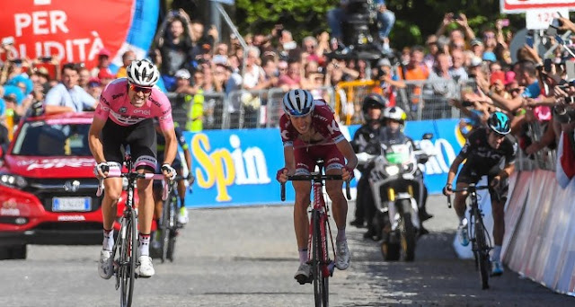 Thibaut Pinot, quien llegó tercero, ocupa ese mismo puesto en la clasificación general, a 3:21, tras la etapa dominical, un recorrido de 199 kilómetros entre Valdengo y Bergamo, incluidos dos ascensos poco antes de la meta y un tramo por calles empedradas y empinadas.