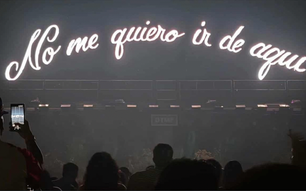 En medio de tanta euforia, una frase en pantalla gigante atrapó la atención: “No me quiero ir de aquí ” Parecía simple, pero encerraba un mensaje poderoso.