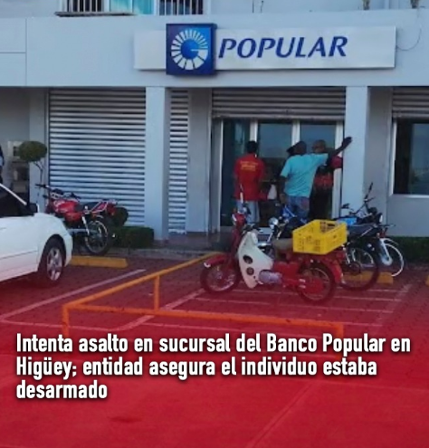 El centro de Higüey se vio alterada este jueves cuando un hombre intento ejecutar un asalto en la sucursal del Banco Popular, situada en la calle Agustín Guerrero, frente al Parque Central del municipio.