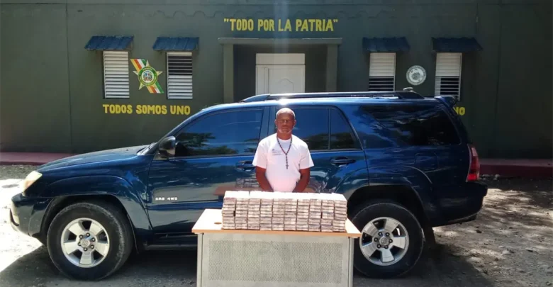 El detenido fue identificado como Enrique Fernando Jáquez Encarnación, quien al momento de la depuración figuraba como Cabo (r) de la Policía Nacional y resultó detenido mientras se desplazaba a bordo de una jeepeta marca Toyota, modelo 4Runner, color azul, con placa haitiana No. BB22471.