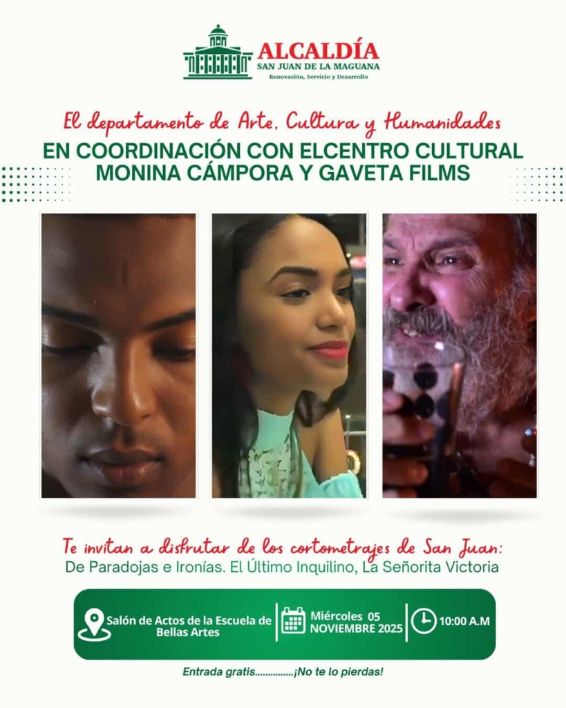 El Departamento de Arte, Cultura y Humanidades de la alcaldía de San Juan de la Maguana presentará este miércoles «Los Cortometrajes de San Juan» una zaga de tres cortos cinematográficos realizados en este municipio por el grupo de cine local Gaveta Films .
