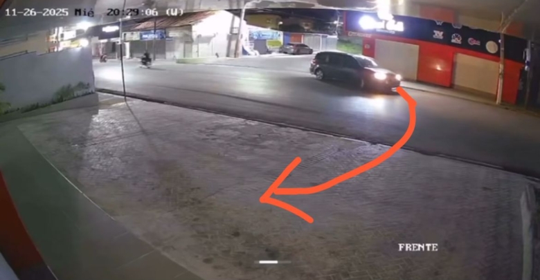 BARAHONA.-En las imágenes se observa que una yipeta tipo minivan permanece detenida en la parte izquierda de la calle, colocada en dirección contraria, con el frente hacia la avenida Luperón.