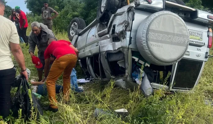 Siete heridos al caer Jeep al vacío en avenida de circunvalación de Baní