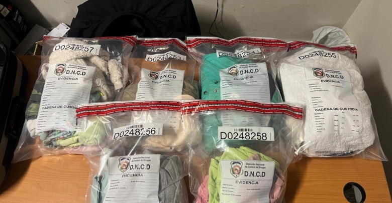 Por instrucciones del fiscal, se inició una verificación más rigurosa, encontrando en dos maletas, un total de 55 prendas de vestir, todas empapadas de la presunta droga, una modalidad del narcotráfico internacional, para tratar de burlar los controles de seguridad establecidos en las terminales del país.
