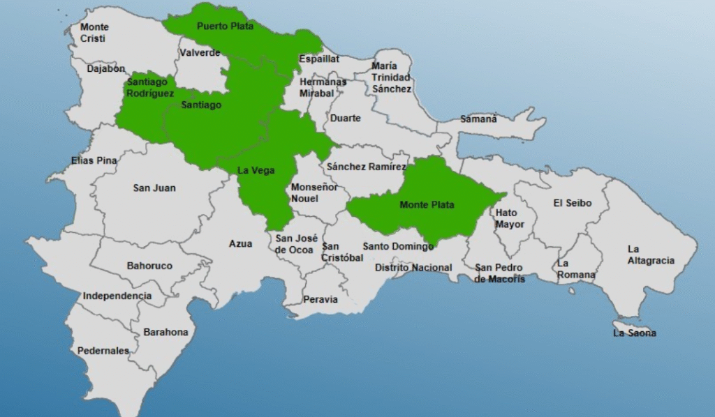 Las provincias bajo alerta verde son Santiago, Puerto Plata, La Vega, Santiago Rodríguez y Monte Plata.