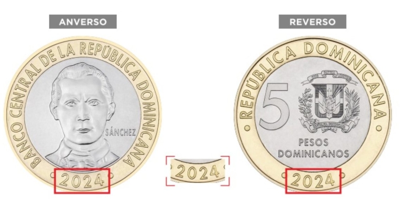 El Banco Central de la República Dominicana informó que, a partir del próximo lunes 2 de febrero, comenzarán a circular las monedas metálicas de la denominación de RD$5.00, correspondientes al año 2024.