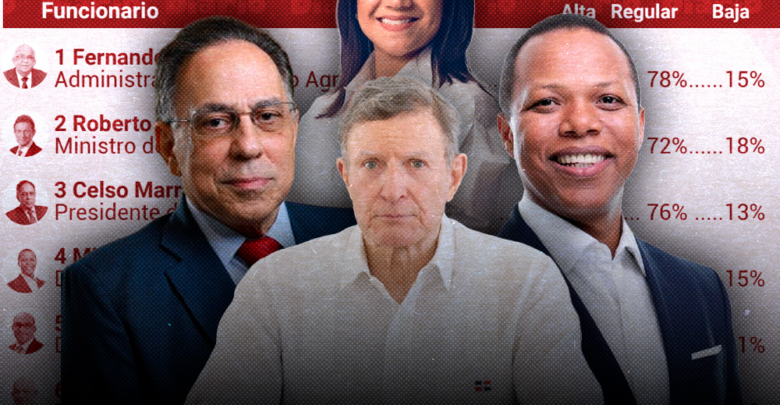 SANTO DOMINGO. – Entre los funcionarios evaluados figuran Faride Raful, ministra de Interior y Policía; Roberto Álvarez, ministro de Relaciones Exteriores; Celso Marranzini, presidente del Consejo Unificado de las Empresas Distribuidoras de Electricidad (CUED); y Milton Morrison, director del Instituto Nacional de Tránsito y Transporte Terrestre (Intrant).