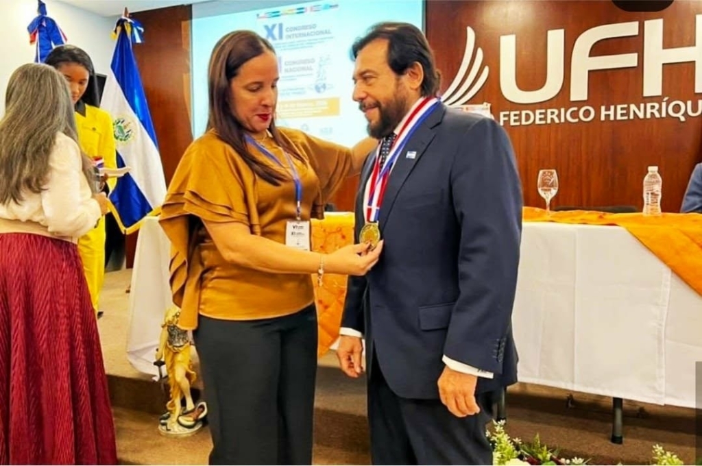 La ceremonia incluyó la entrega de medallas al rector nacional de la Universidad Federico Henríquez y Carvajal, Alberto Ramírez Cabral, y al asesor nacional, Manuel Ramírez Suzaña, así como a destacadas figuras del ámbito jurídico, encabezadas por Cleopatra González Almonte, organizadora del evento, presidenta de la Asociación de Abogados Laboralistas de La Romana y vicepresidenta de la Asociación Iberoamericana de Derecho del Trabajo y de la Seguridad Social.