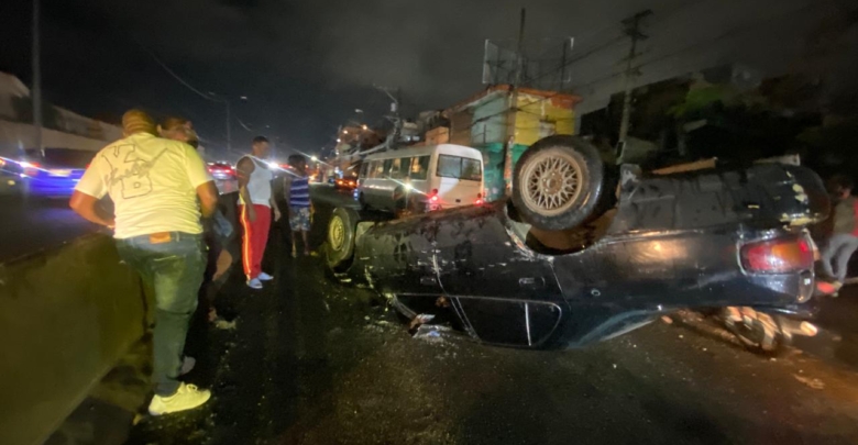 Un vehículo se volcó la noche de este miércoles en el elevado de la avenida Máximo Gómez, próximo a la avenida Nicolás de Ovando, en el Distrito Nacional. A pesar del aparatoso accidente, el conductor resultó con heridas leves.
