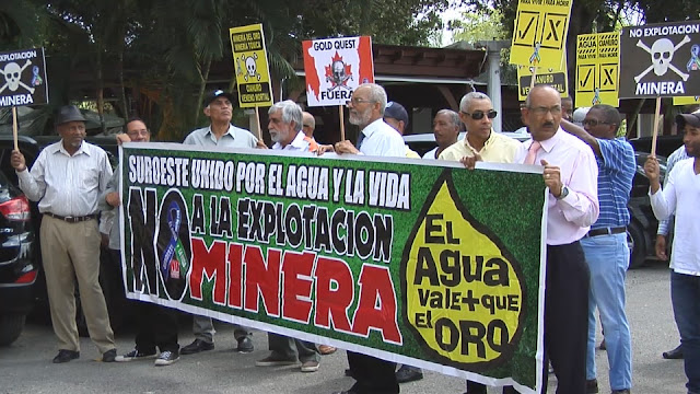 La entidad referida terminó su ratificacion al paro de labores de este lunes, expresando que :»El agua es un tesoro que vale más que el oro. Y no queremos aquí lo que pasa en Cotuí. Por eso llamamos a apoyar la huelga de este lunes 27 de abril en San Juan en contra de la minera GoldQuest. ¡Agua sí, Oro no!¡Luis saca a los mineros de aquí! Comisión de Prensa Movimiento Suroeste Unido por el Agua y la Vida «.